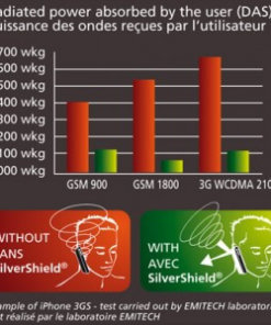 Ces tests ont permis d’apprécier le niveau de protection qu’offre l’étui MySilverShield et montre une atténuation du niveau DAS* de :